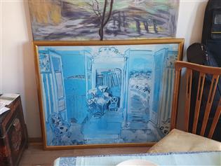 tweedehandswinkel. Pal tegen het glas stond een enorm schilderij dat mij bekend